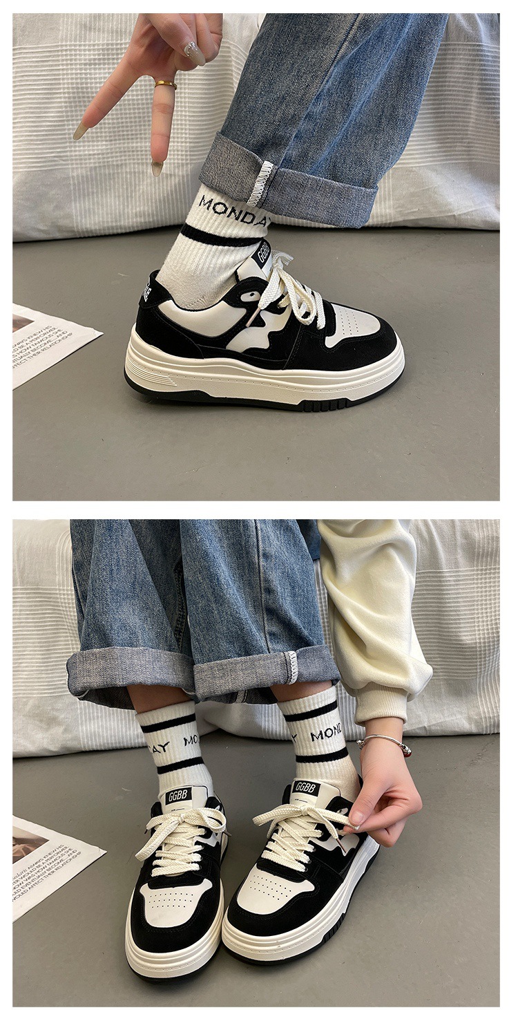 レトロ感溢れる厚底デザインが特徴的なスエード靴のスニーカーです。 滑らかなスエード素材と合成皮革のコンビネーションが、カジュアルながらも洗練された雰囲気を演出します。 ボリューム感のある厚底ソールがスタイルアップ効果を発揮し、クッション性にも優れているため長時間の着用も快適です。 幅広いコーディネートに合わせやすく、デイリーユースからお出かけまで幅広く活躍する一足です。