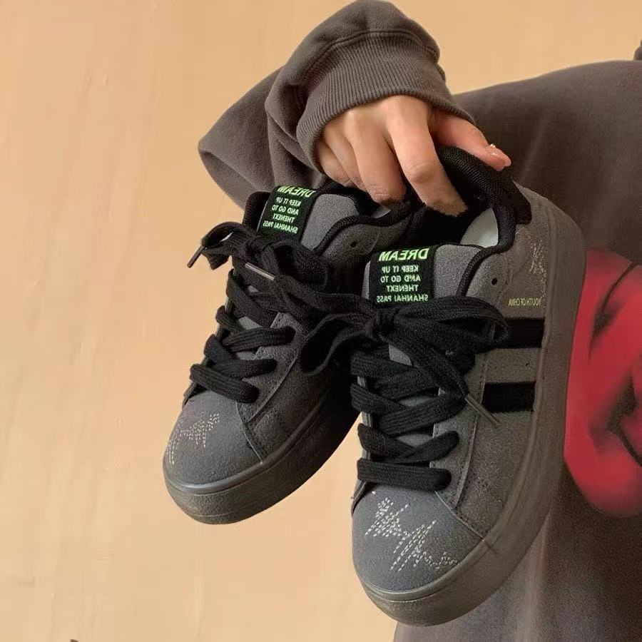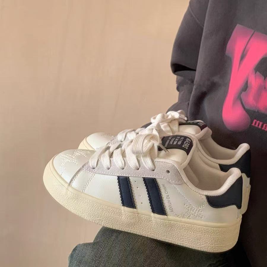 サイドに三本の線を配したクラシックなデザインが特徴のスエード靴です。 柔らかな起毛素材を使用したスニーカーは、履き心地の良さと上品な質感を両立しています。 つま先部分には繊細な装飾が施され、カジュアルながらも洗練された印象を演出します。 幅広の靴紐とクッション性のある底面により、日常使いに最適な一足となっています。 シンプルで合わせやすく、様々なコーディネートに活躍する定番アイテムです。