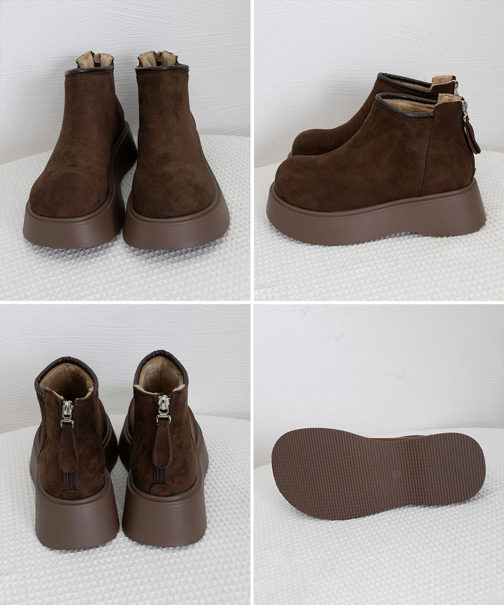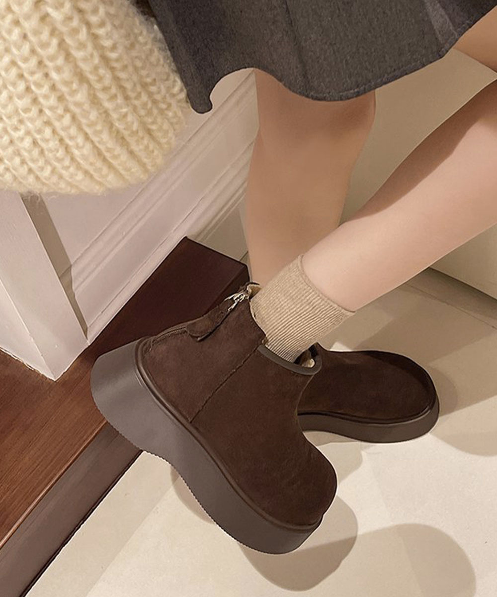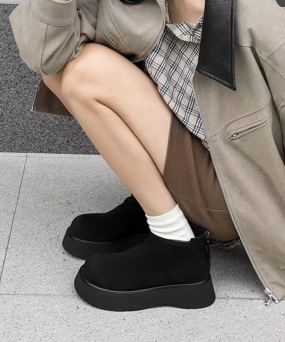スエード靴の上質な質感と厚底が魅力的なショートブーツです。