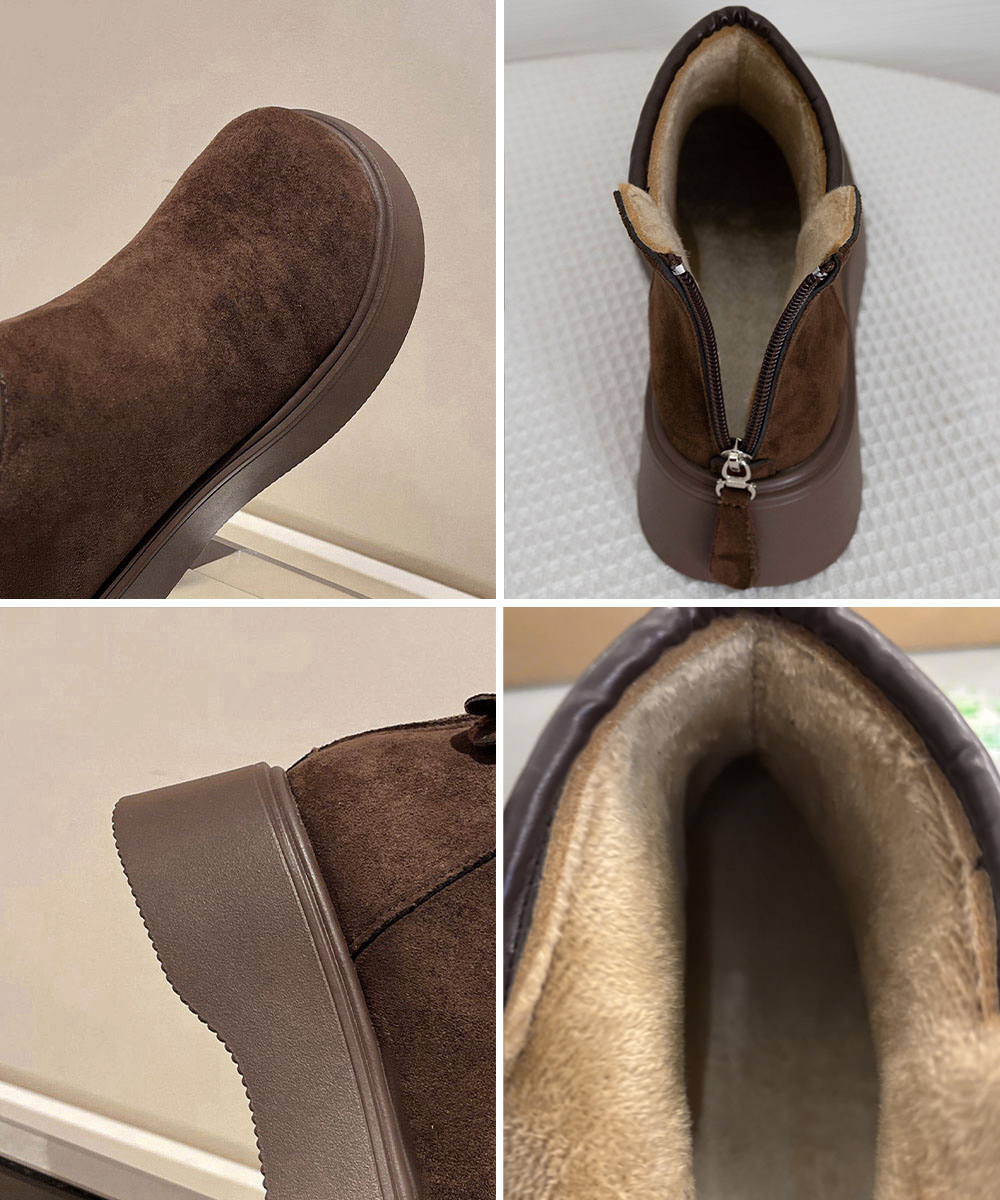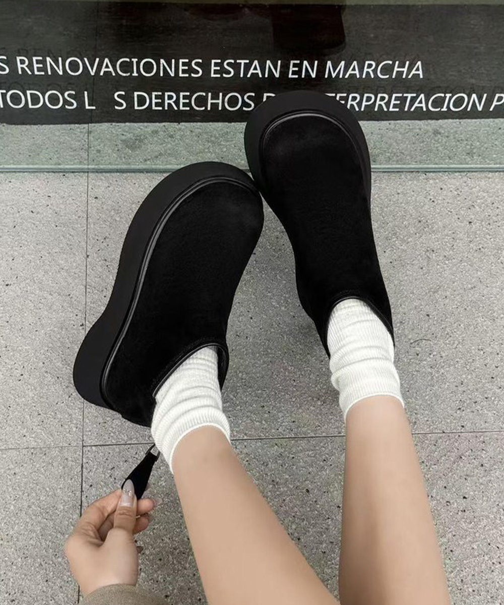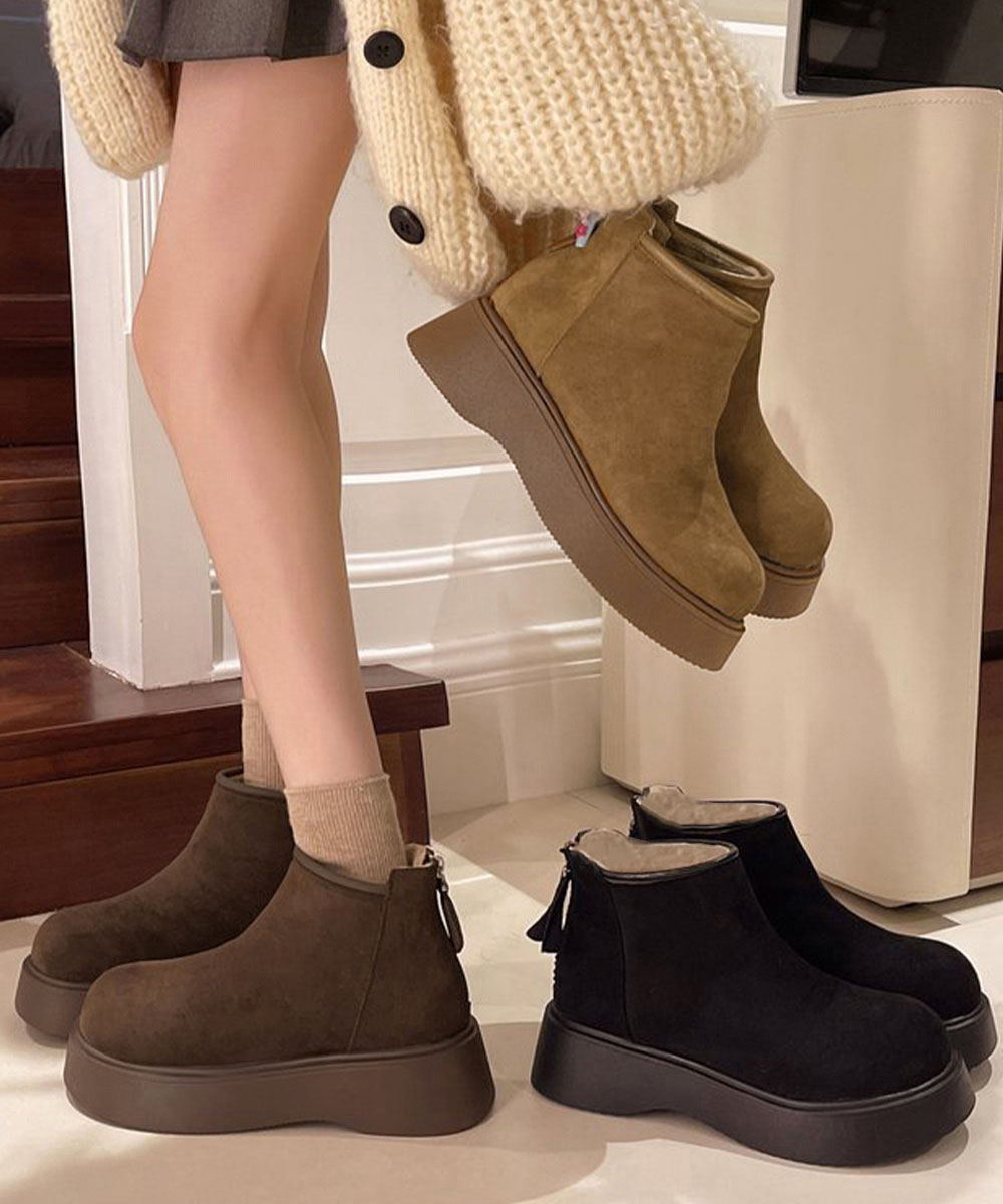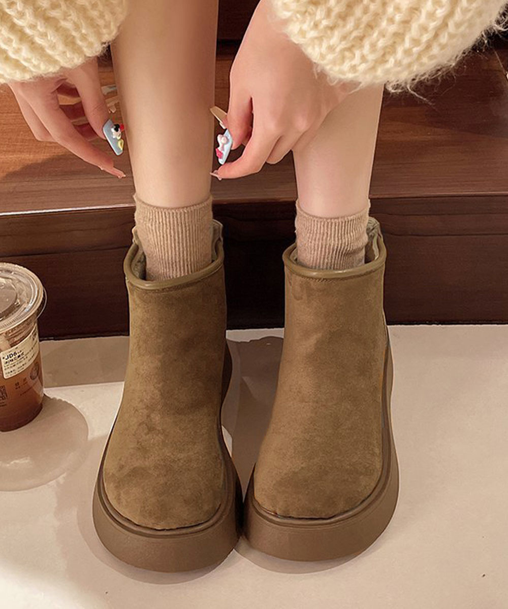 スエード靴の上質な質感と厚底が魅力的なショートブーツです。