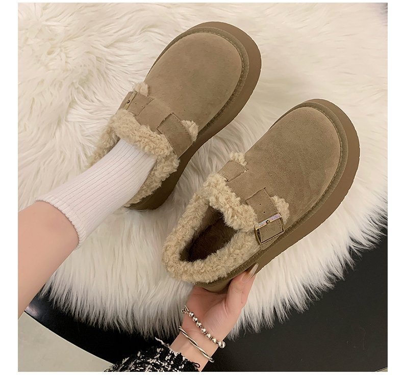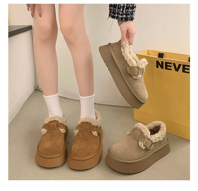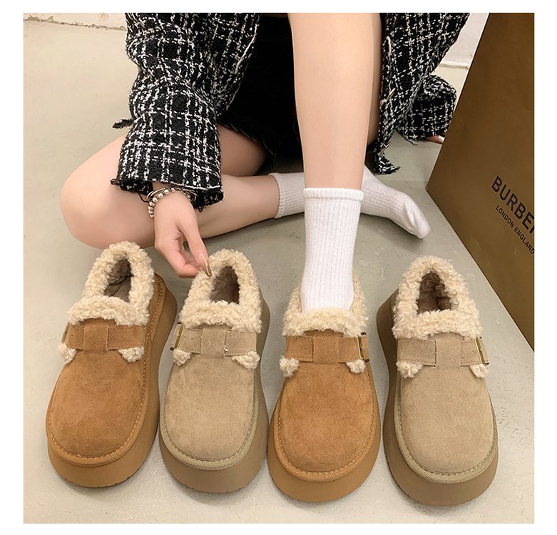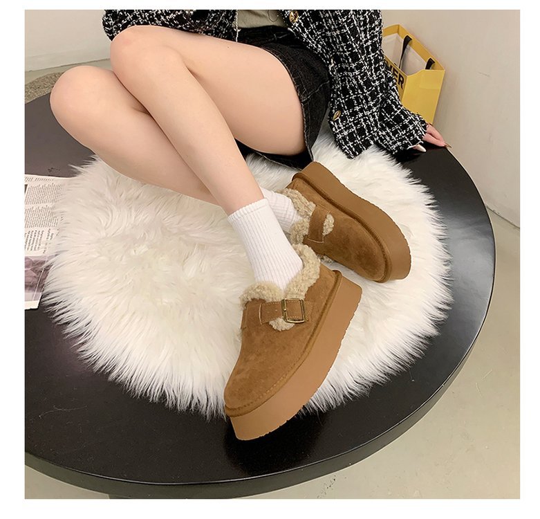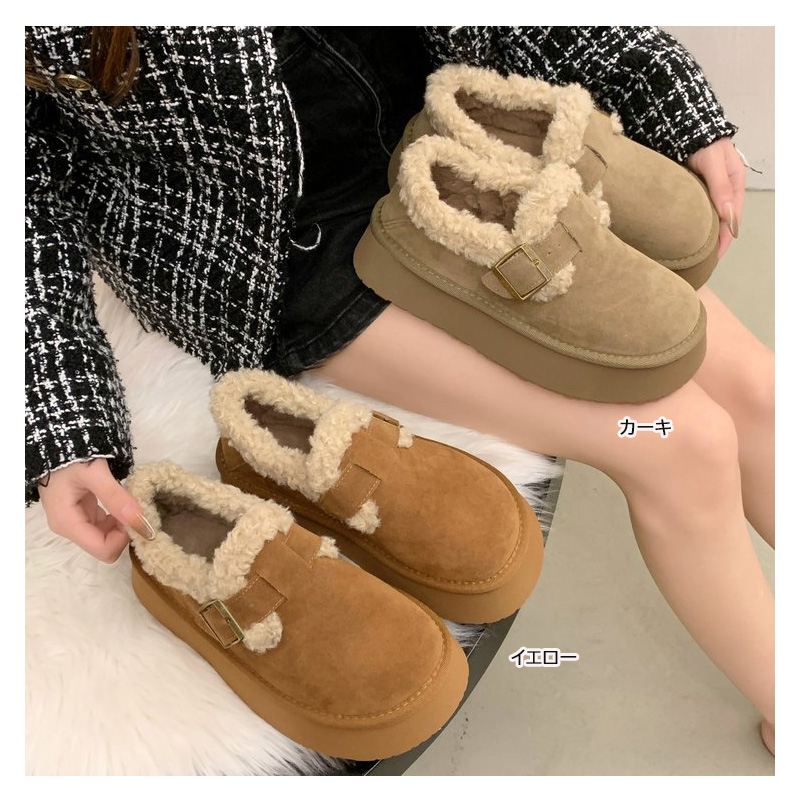 裏起毛とボア素材で足元をしっかり保温し、厚底デザインで歩きやすさも抜群。