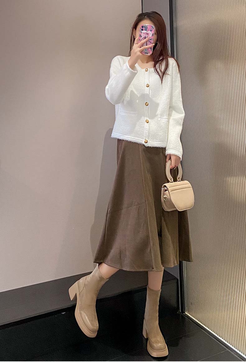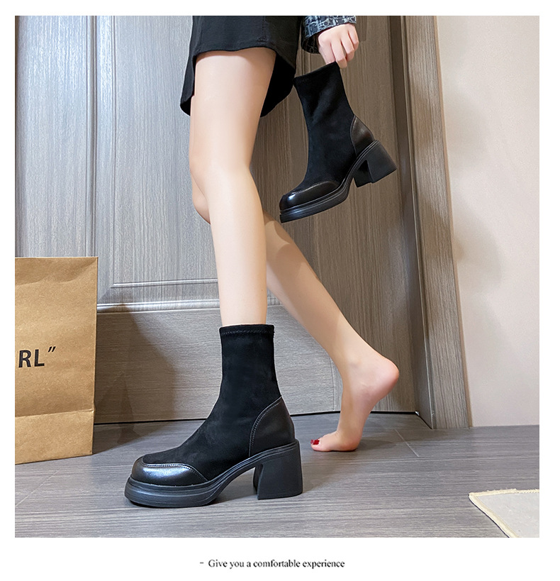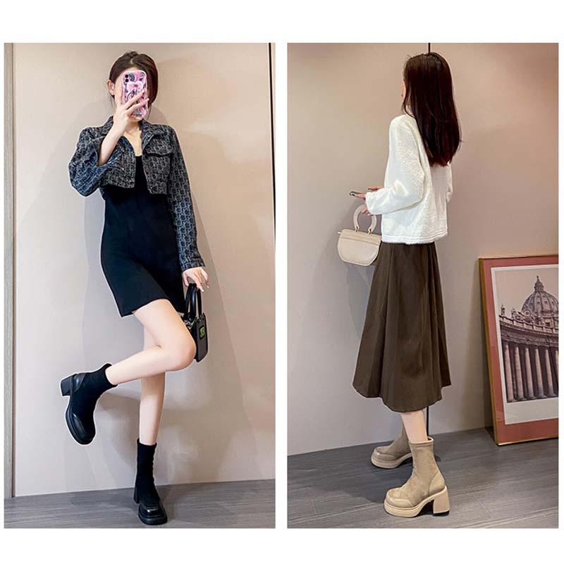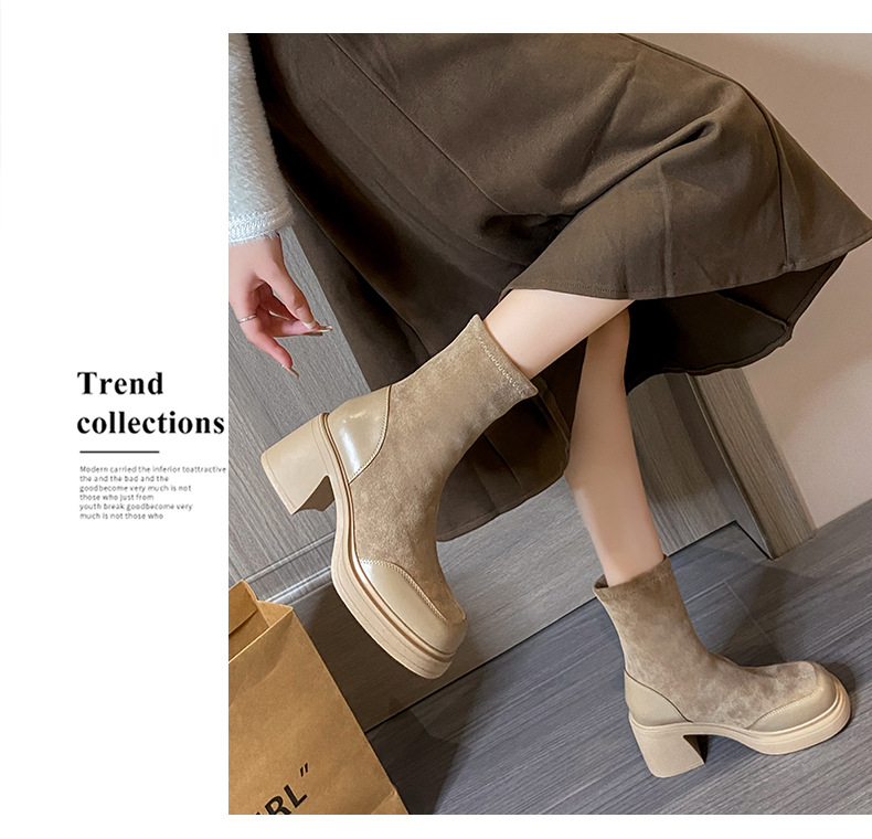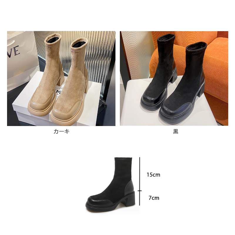 上質なスエード調素材を使用したレディース厚底ミドル丈ブーツです。