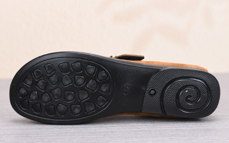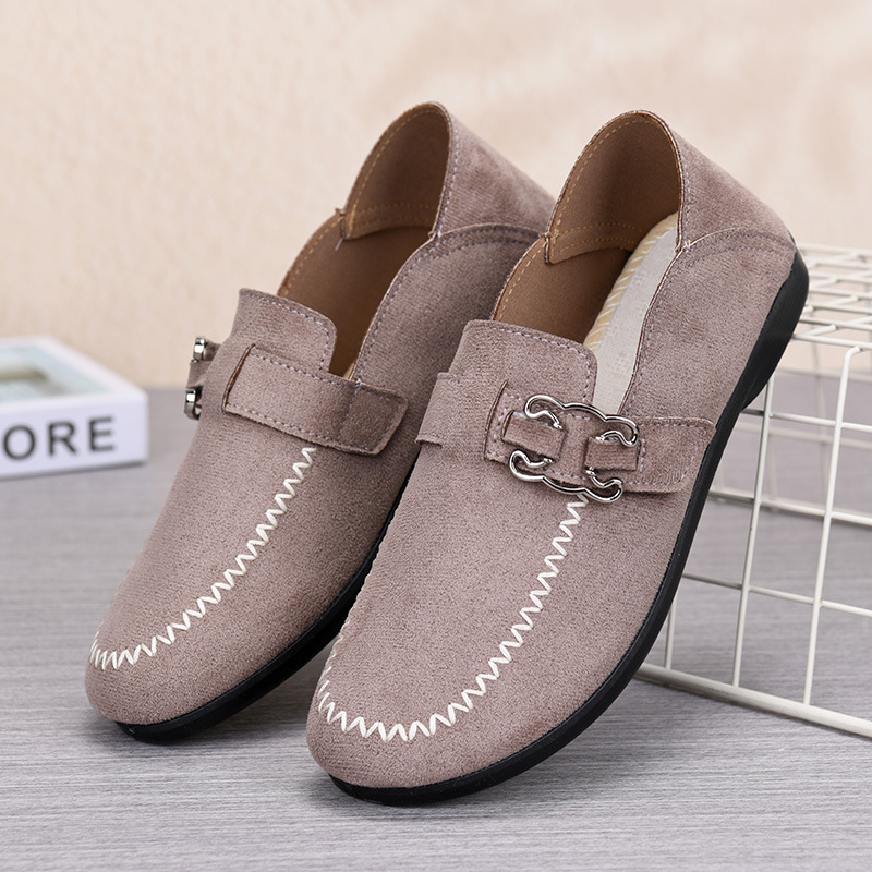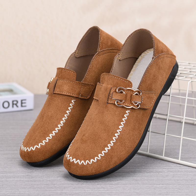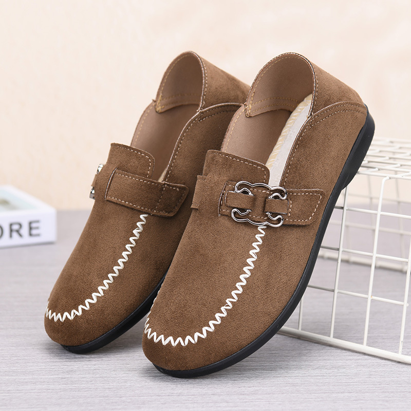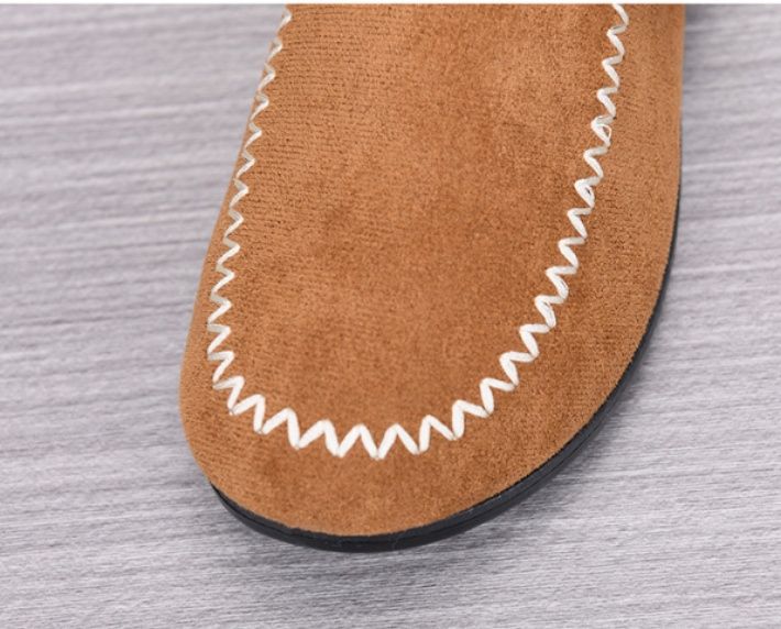 アッパー全体に施されたステッチワークが手作り感を演出し、スエード靴ならではの柔らかな質感が足を優しく包み込みます。