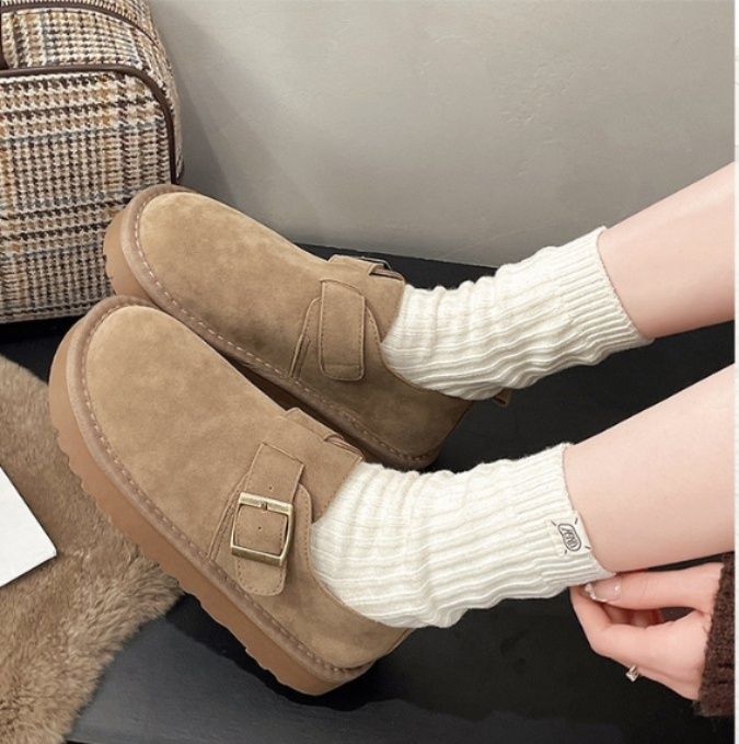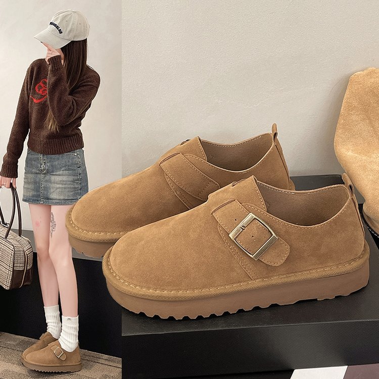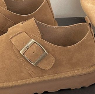 サイドのベルトがアクセントになったカジュアルで履きやすいレディース向けスリッポンタイプのスエード靴です。