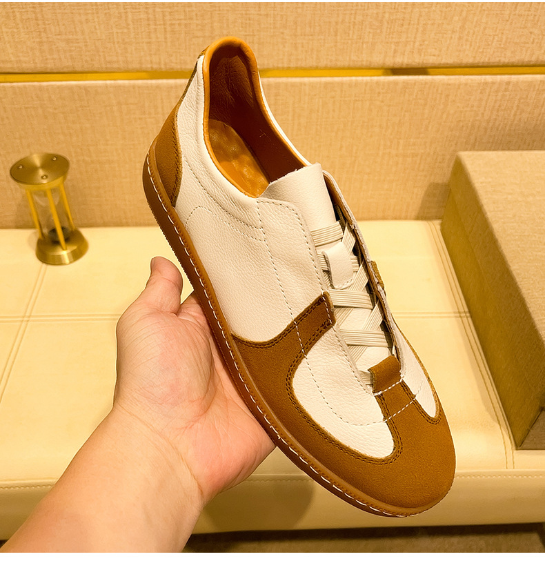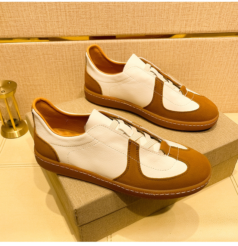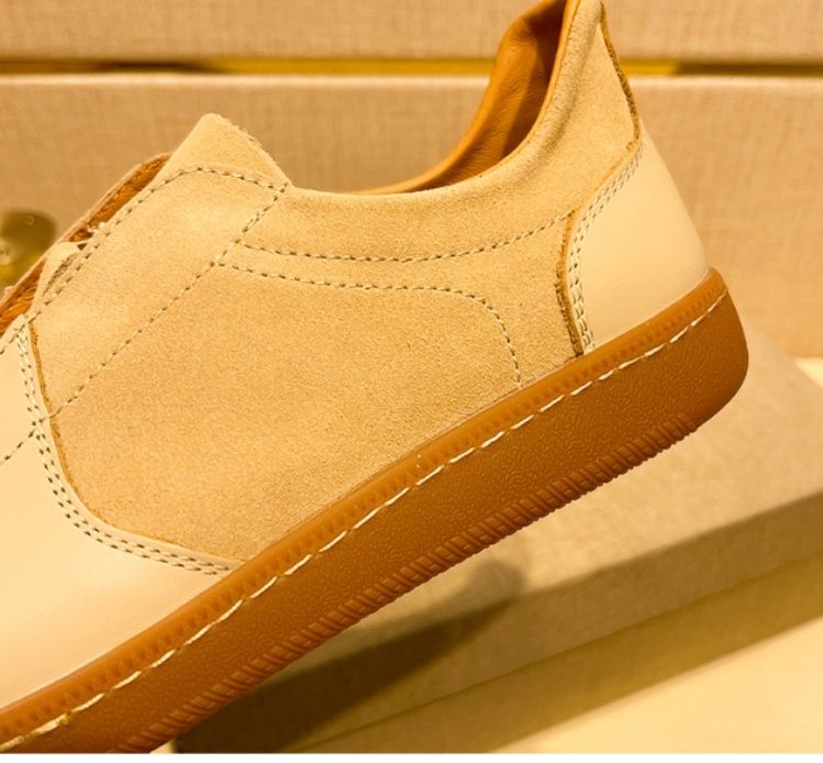 異素材の切替デザインが足元に個性を演出し、カジュアルからきれいめまで幅広いコーディネートに対応します。