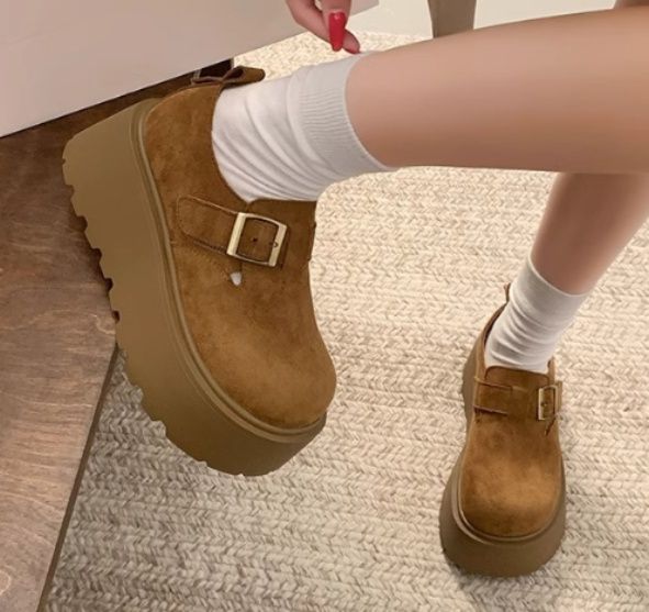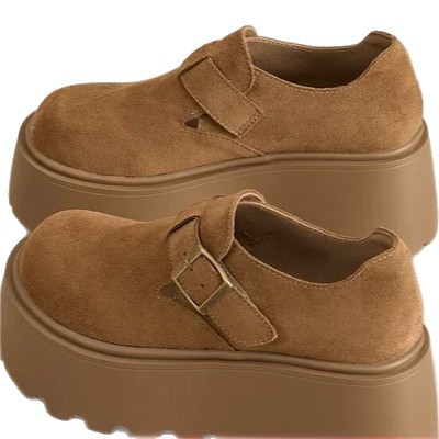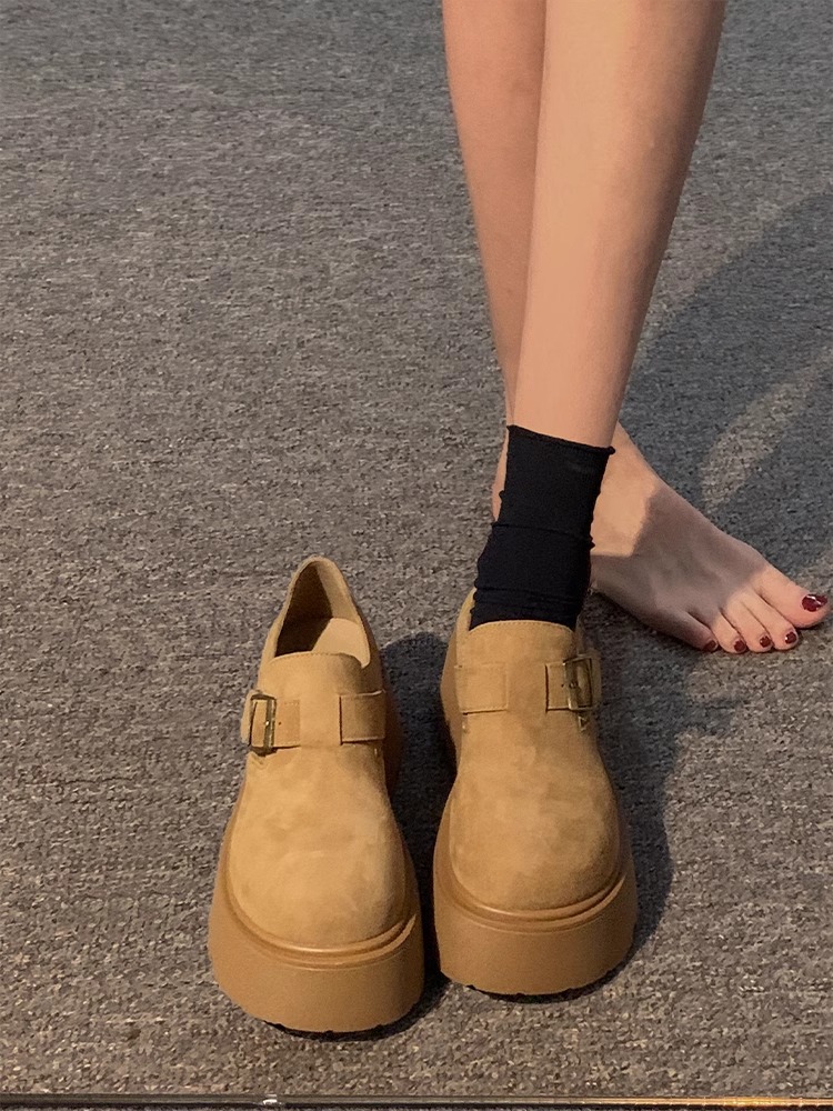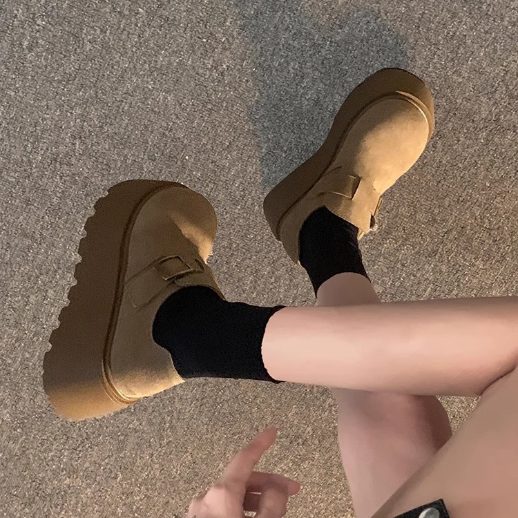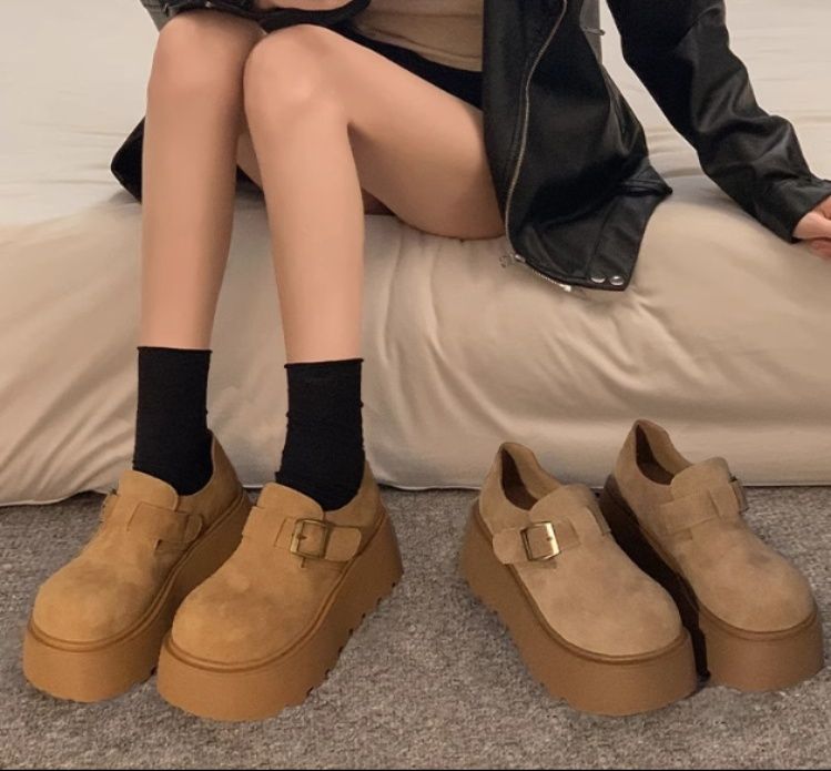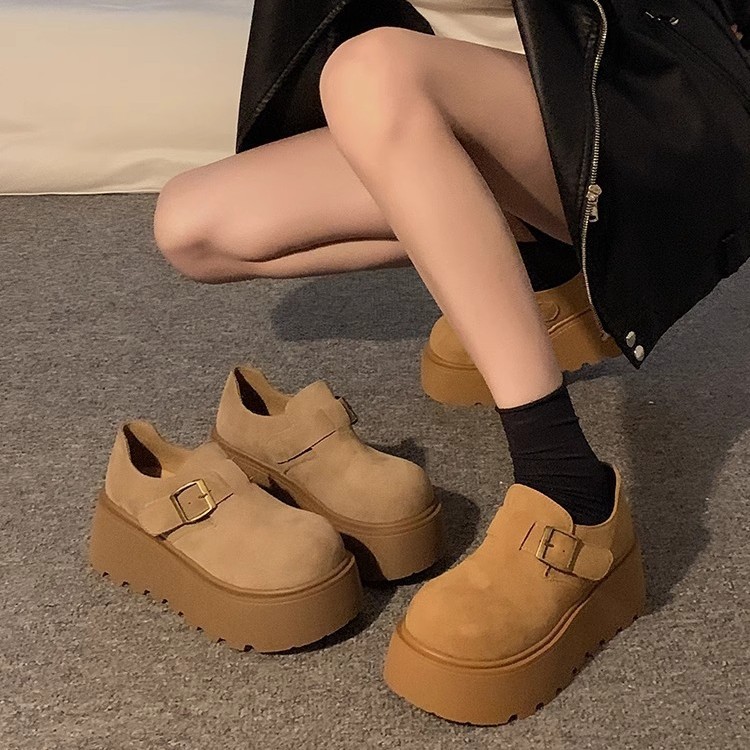 厚底ソールが特徴的なレディースのスエード靴ローファーです。